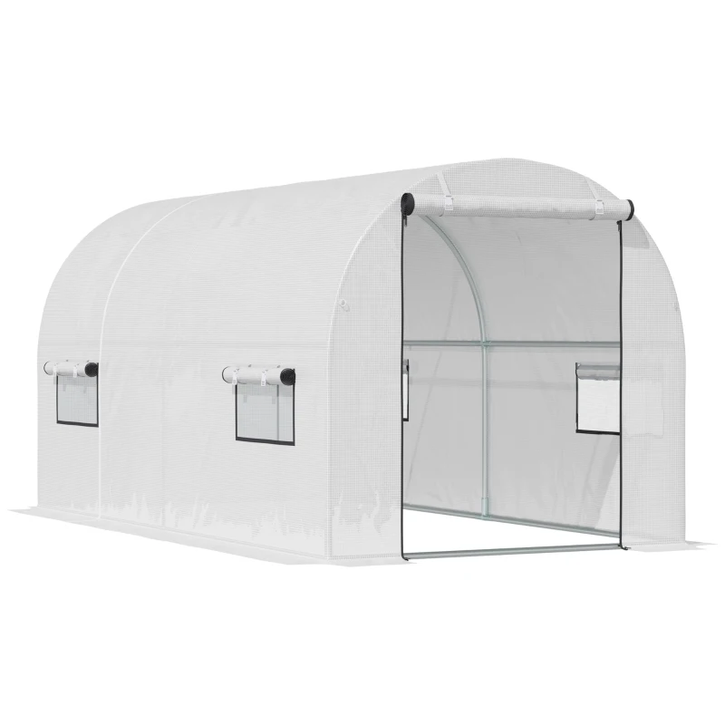 Outsunny Invernadero de Túnel Invernadero de Jardín 295x200x190 cm Invernadero con Ventanas y Puertas para Cultivo Plantas Blanco