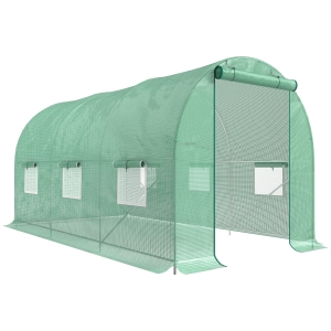 Outsunny Invernadero de Túnel 400x200x200 cm Invernadero de Jardín con Puerta Enrollable y 6 Ventanas PE 140 g/m² Anti-UV Blanco
