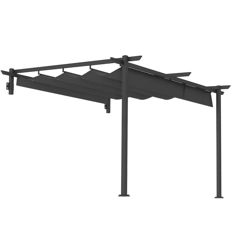 Outsunny Pabellón, 3 x 3 m Pérgola, Techo para terraza resistente al viento, montaje en pared, techo ajustable, para jardín, terraza, Gris oscuro