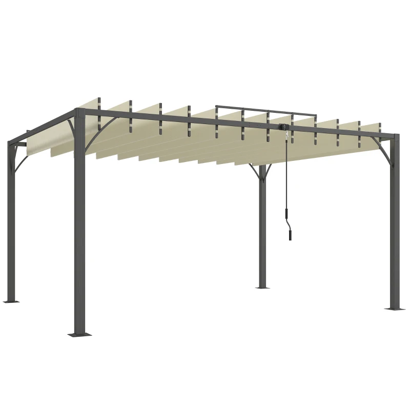 Outsunny Pérgola de Jardín 3x4 m con Protección UPF30+ Gazebo con Techo Ajustable Estructura de Aluminio para Exterior Crema