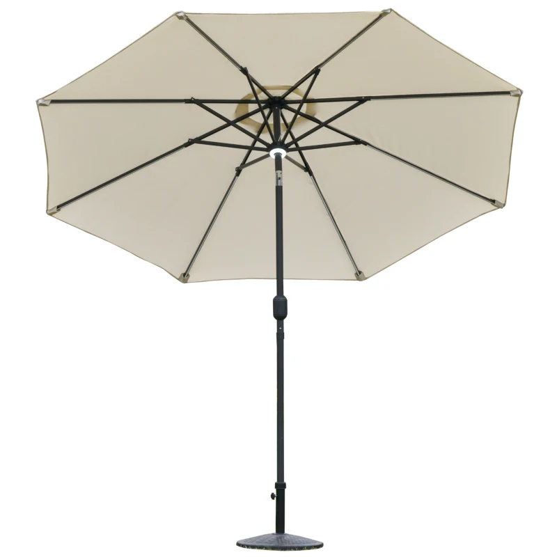 Outsunny Sombrilla de Jardín Φ270 x 245Acm con Apertura por Manivela e Inclinable, Luces LED y Panel Solar, Blanco Crema