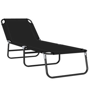Outsunny Tumbona Plegable Ajustable de 4 Posiciones con Sistema de Cordones para Exterior Marco Acero 189x58x30 cm Negro
