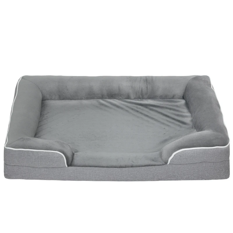 PawHut Cama para Perros Medianos Cama para Gatos con Base Antideslizante Funda Extraíble y Lavable 91,5x68,5x16,5 cm Gris