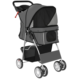 PawHut Carrito para Perros Pequeños con Cesta de Almacenaje Portavasos Ruedas y Cojín Lavable 77x44x102 cm Negro