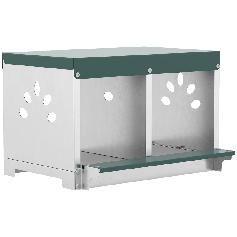 PawHut Ponedero para Gallinas de Acero Galvanizado con 2 Huecos para 2 Gallinas con Techo Impermeable y Ventilación Plateado y Verde