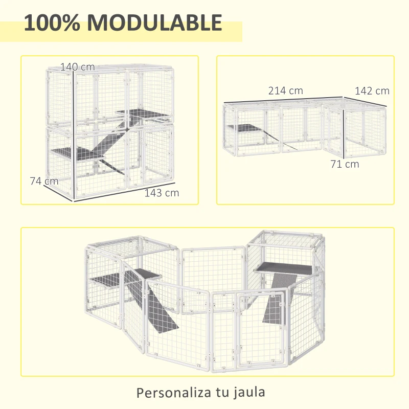 Pawhut Valla Metálica para Mascotas Parque para Conejos Conejera con 16 Paneles Puerta con Pestillo y Escalera para Cobayas Gatos Cachorros Diseño DIY 68x68x2,5 cm Blanco