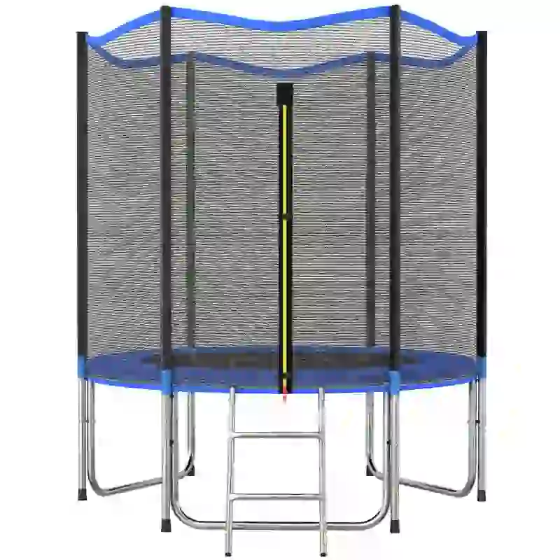 SPORTNOW Cama Elástica Exterior Ø183 cm Trampolín para Niños con Red de Seguridad Escalera y Acolchado de Muelles Azul