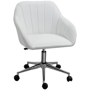 Vinsetto Silla de Oficina Ergonómica Silla de Escritorio Giratoria con Altura Ajustable Respaldo y Reposabrazos de Piel Sintética Carga 120 kg 60x59x79-89 cm Blanco