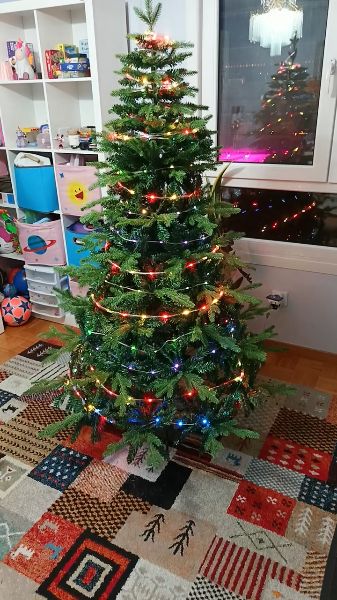 El árbol se ve muy bien.En una 1:30 ,2 horas me llevo dejarlo bien preparado.Se ve muy realista .Volvería a comprarlo..Envío rápido.En 3 días estaba en casa.